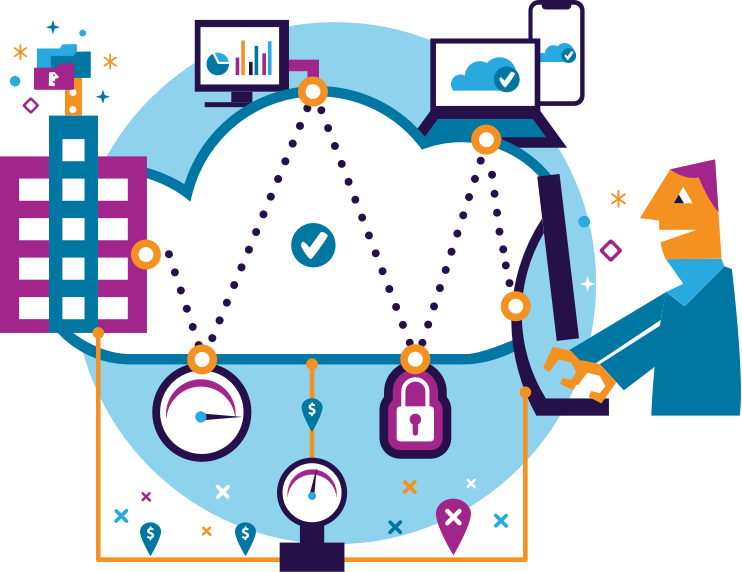 Acceso seguro a Internet para las sucursales Incluimos un paquete de seguridad para redes completo incluido en la nube. Al conectar todas las