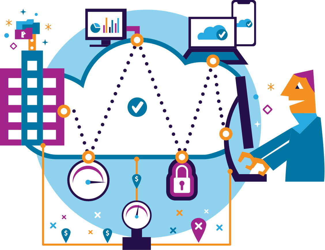 Acceso seguro a Internet para las sucursales Incluimos un paquete de seguridad para redes completo incluido en la nube. Al conectar todas las